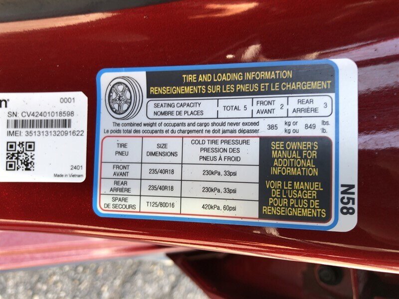 - Spare tire kit: inflator kit, tire sealant
